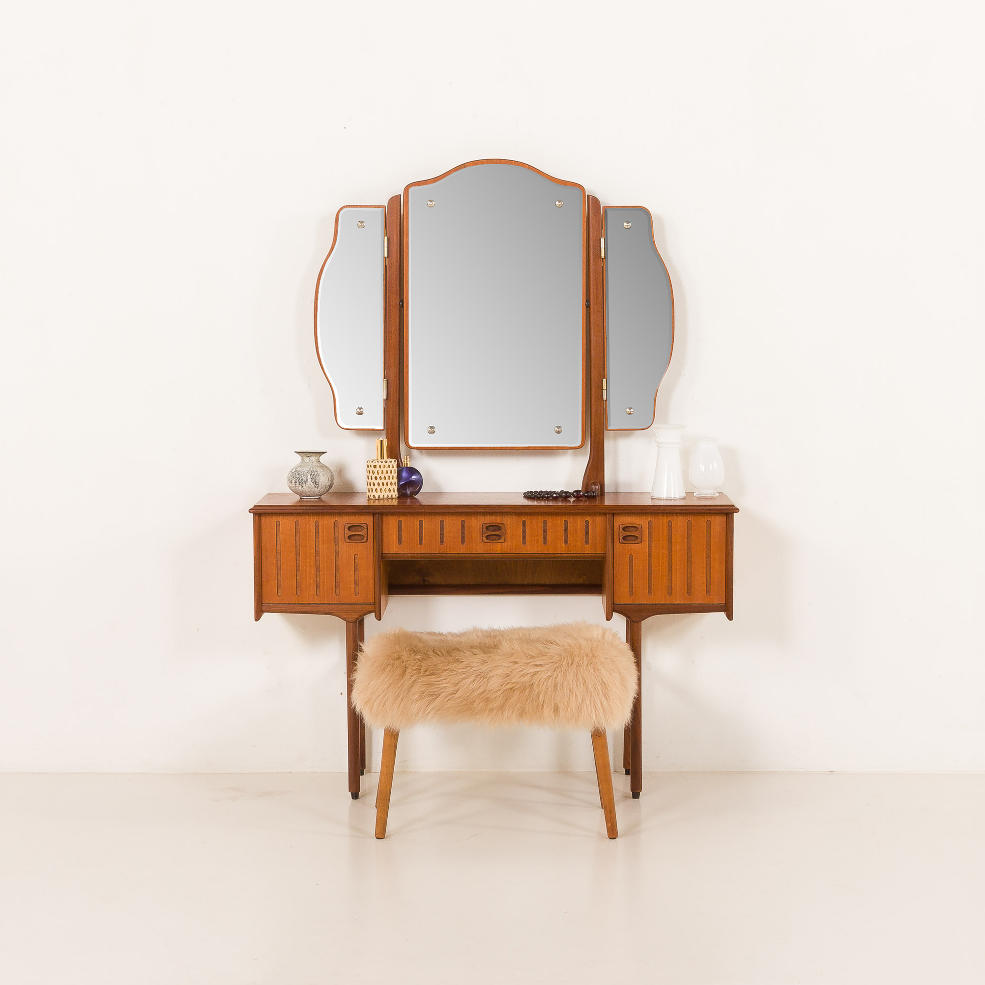 The elegant Scandinavian mid-century teak dressing table 1960s and 1970s, comes from Norway.
