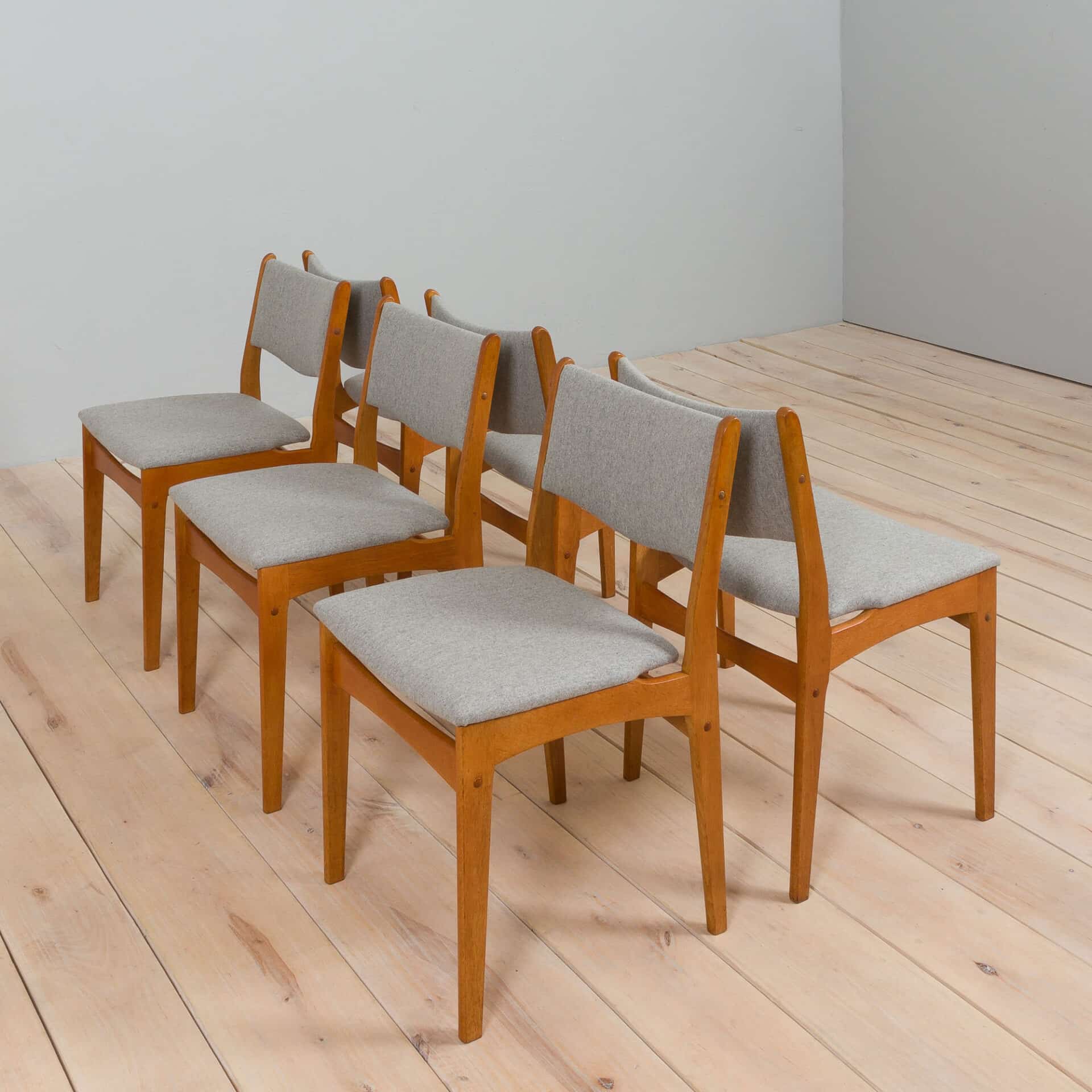 Set of 6 oak dining chairs by Johannes Andersen for Uldum Mobelfabrik in grey wool upholstery, Denmark 1960s