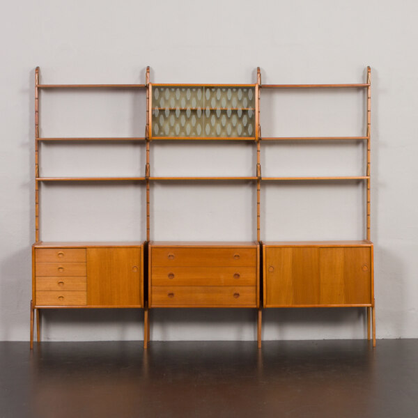 • Scandinavian free standing wall unit model Ergo in light teak by John Texmon, Norway 1960s.