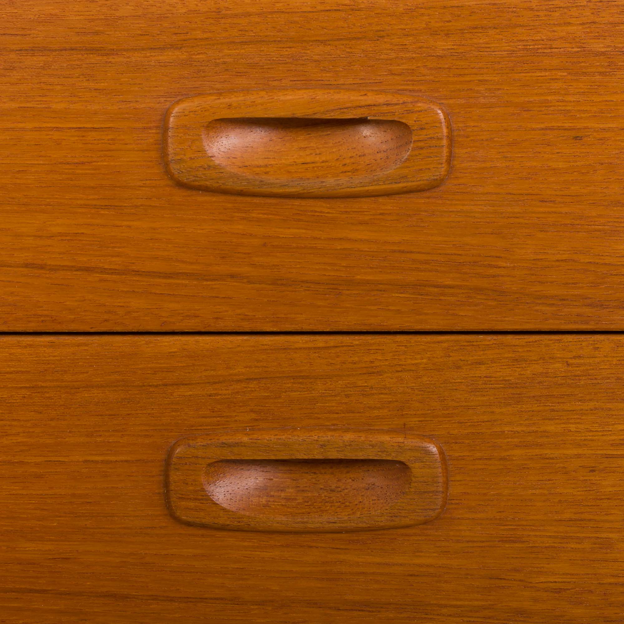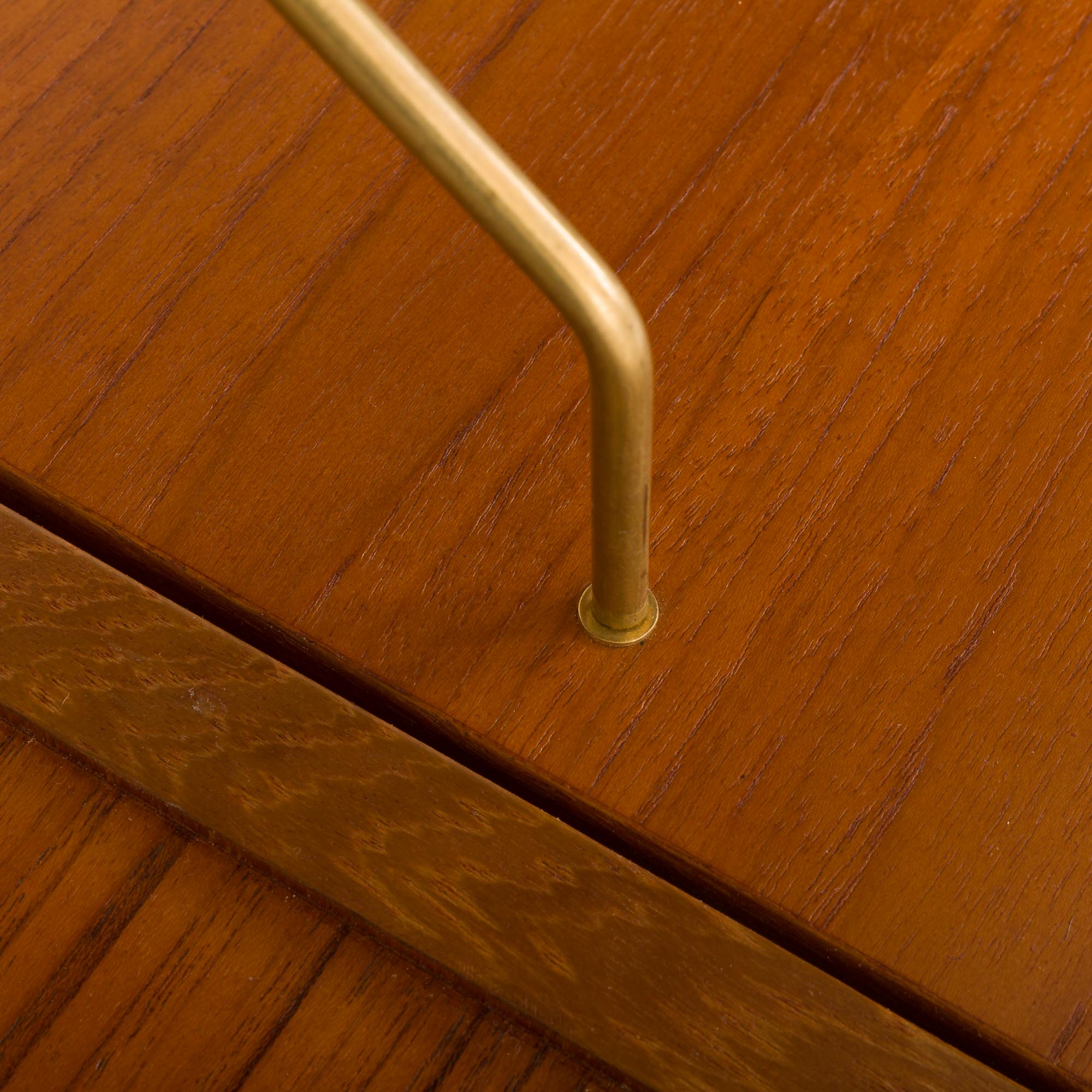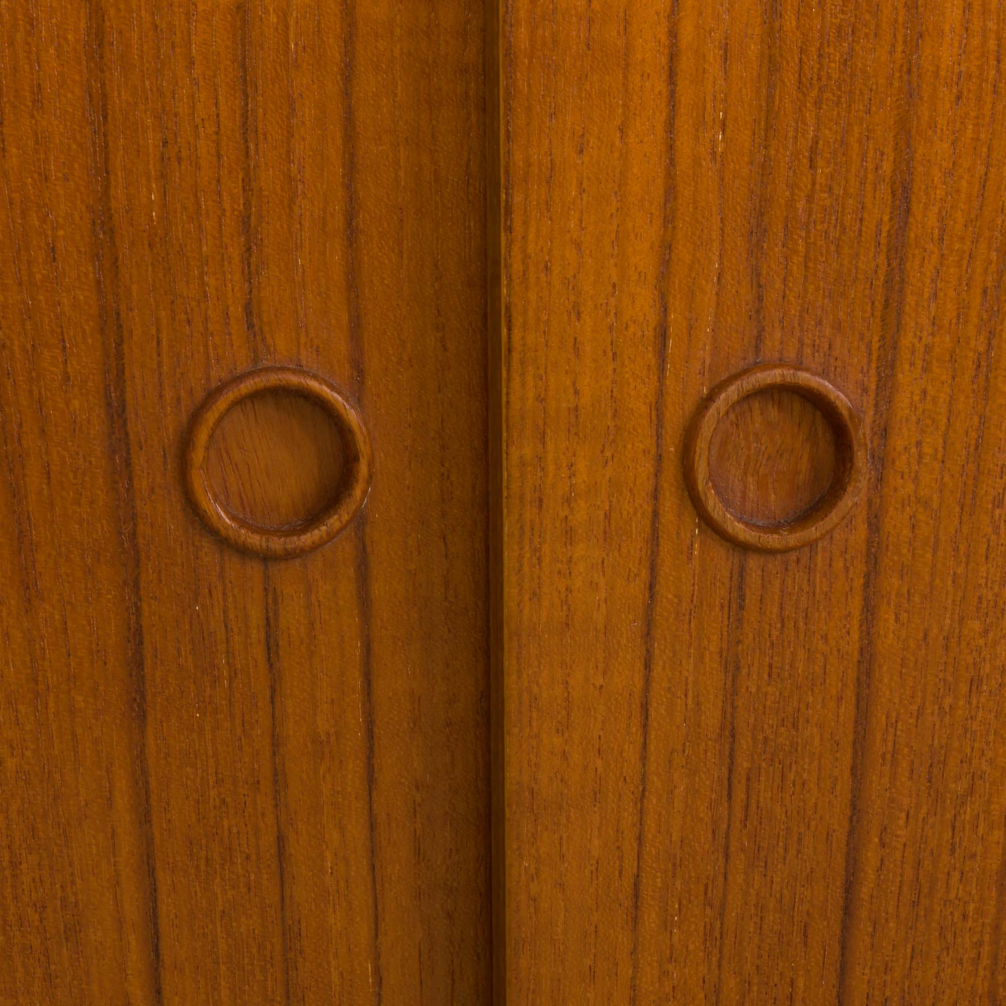 Extremely functional modular shelving and wall unit system designed by Preben Sørensen in the 1960s. Made from teak wood and teak veneer—materials known for their warm color, durability, and longevity—it is built to last for many more decades.The handles are sculpted from solid wood and masterful joinery is showcased in the dovetailing of the drawer fronts, a demanding and increasingly rare technique in modern furniture making.The variety of components offers a versatile mix of display and storage options.