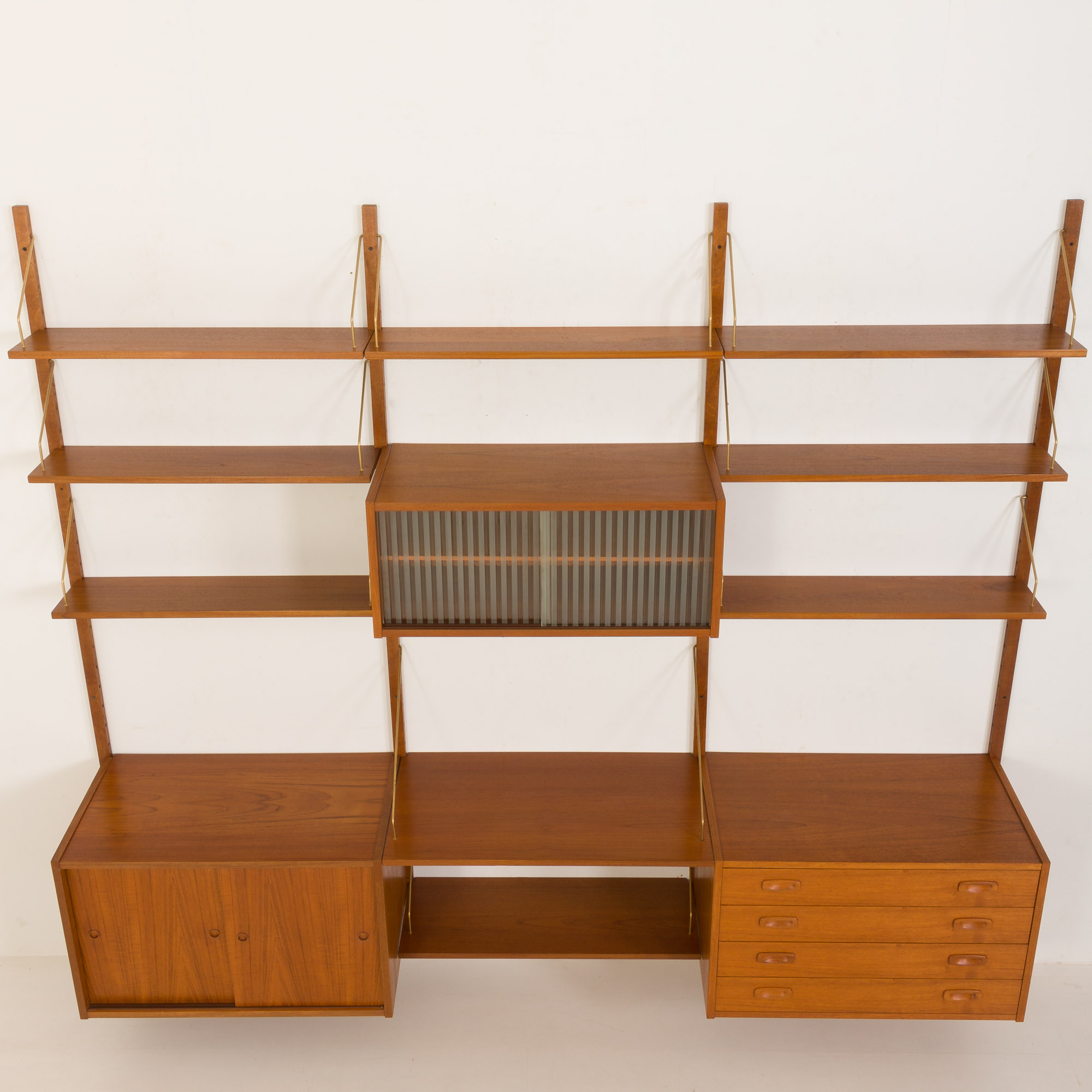 Preben Sorensen three bay teak wall unit, PS systems Randers, Denmark 1960s