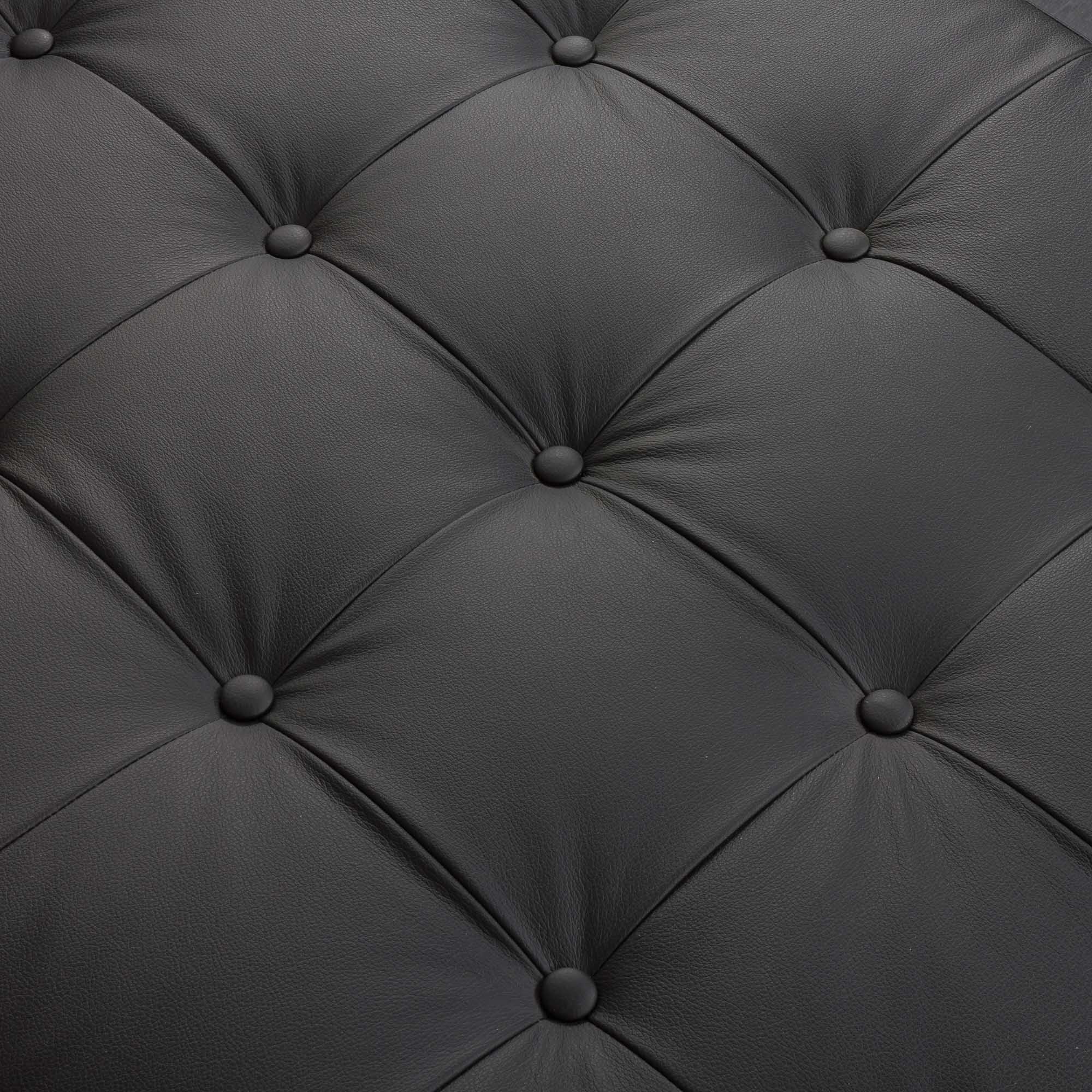 A nicely profiled wooden frame with gently rounded corners not only keeps the mattress stable but also perfectly harmonizes with the black upholstery, creating a timeless design.