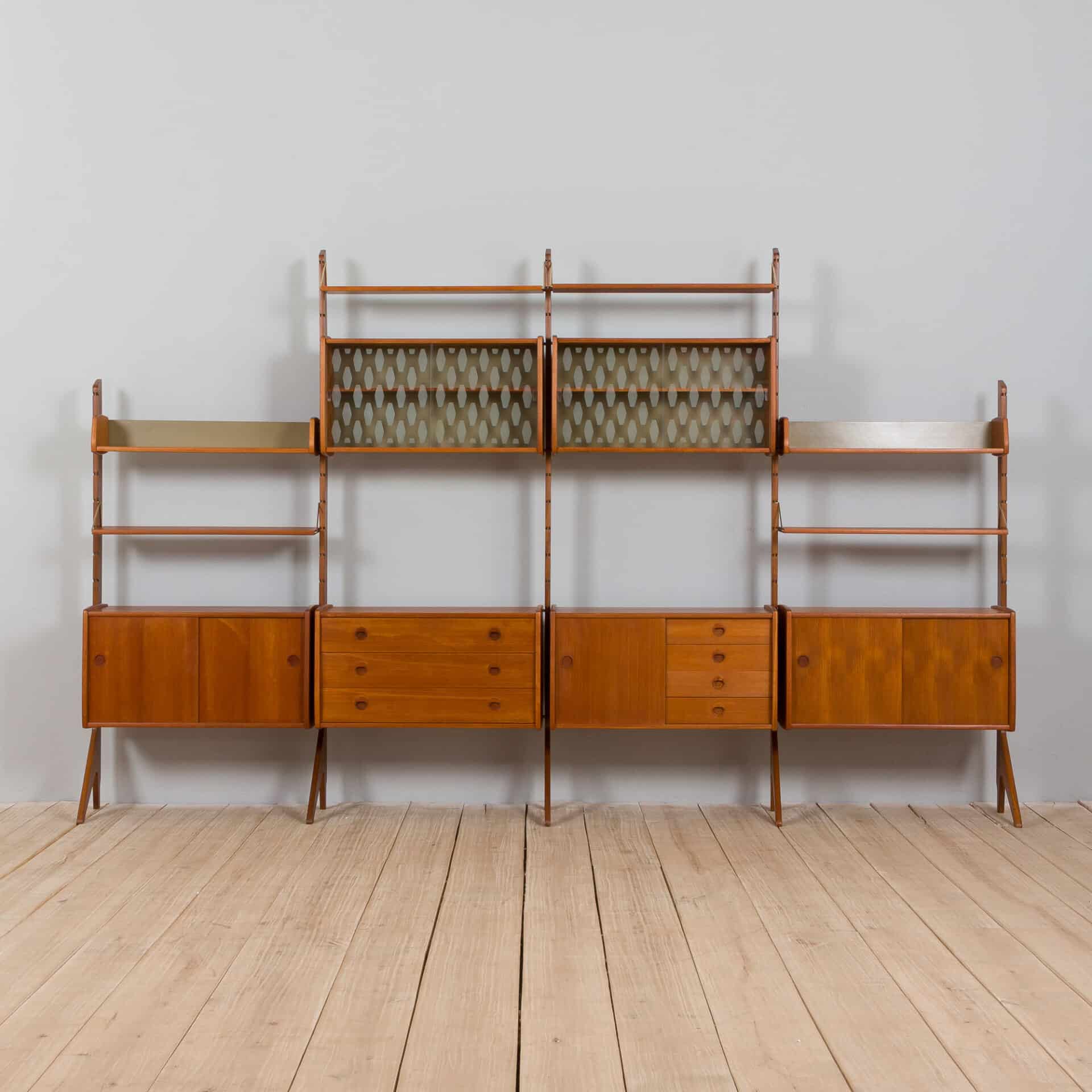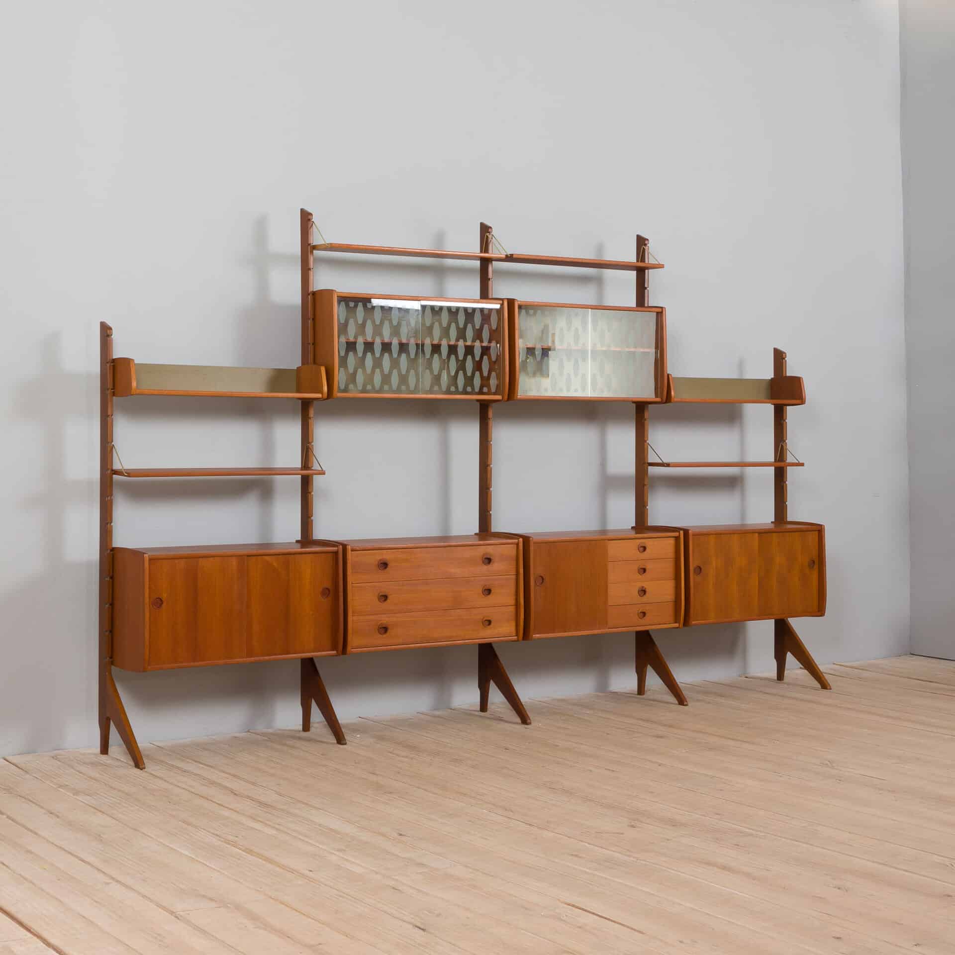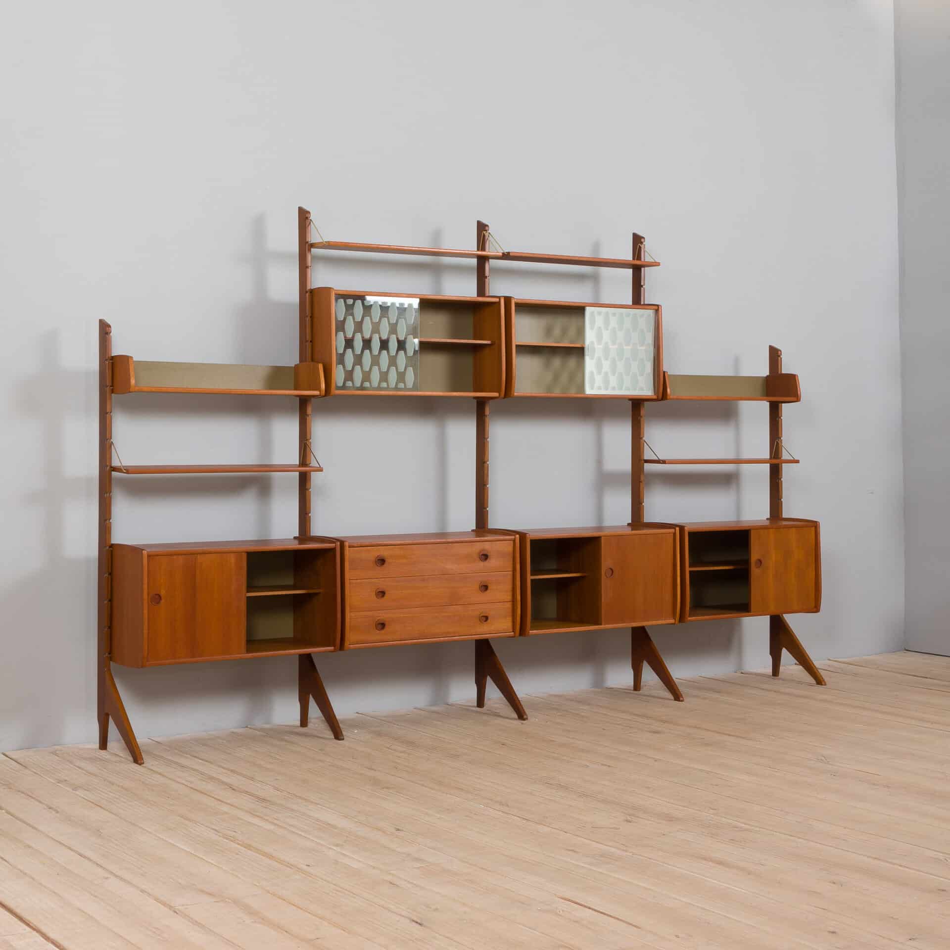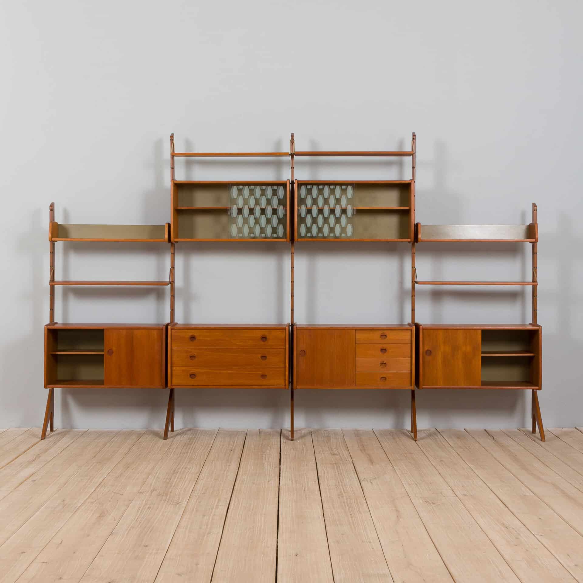Teak free standing 4 bay Ergo wall unit by John Texmon and Einar Blindheim, Norway 1960s