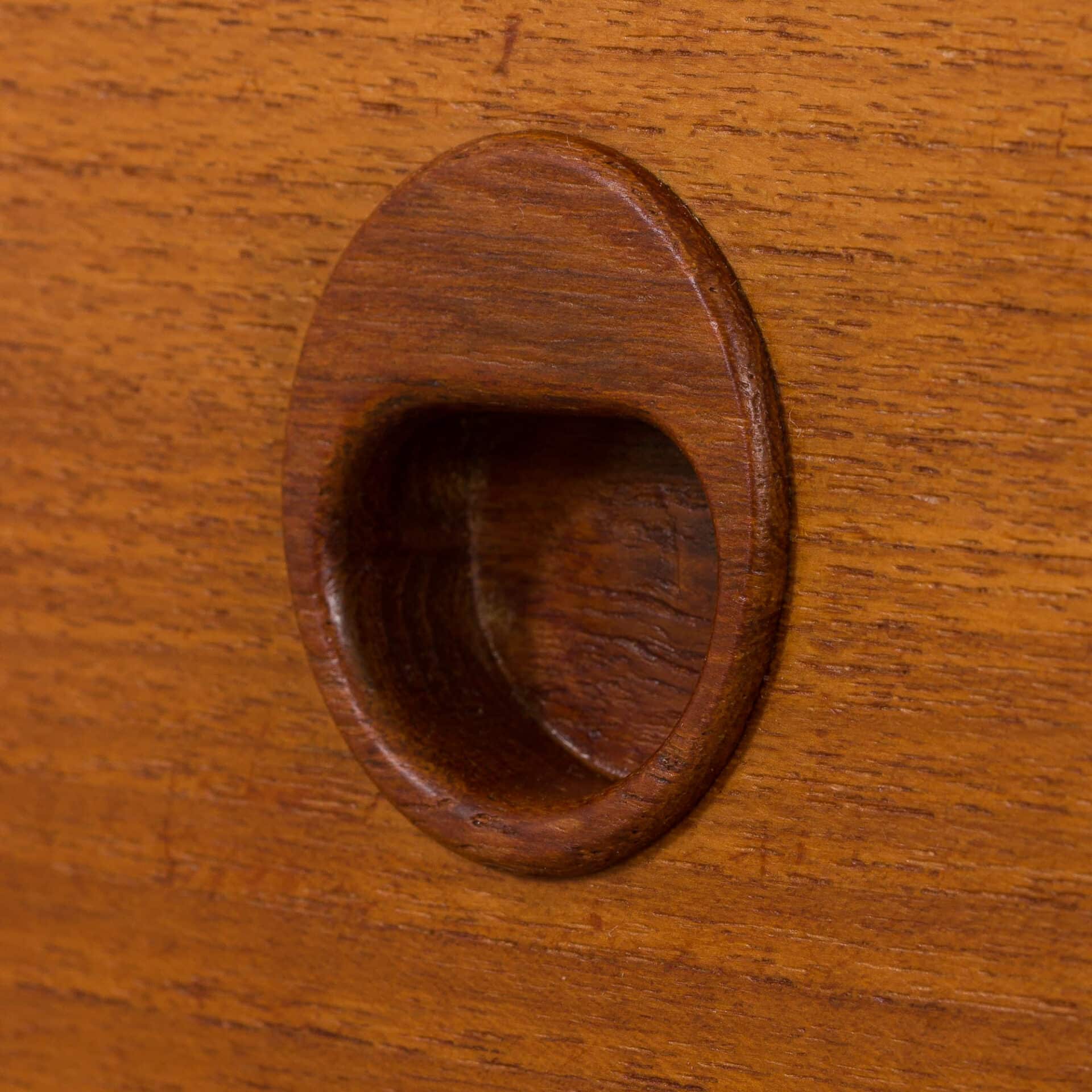 Impressive 4 bay free-standing wall unit with six cabinets and six shelves provides just enough space for storage and books. An essence of Scandinavian modern modular shelving system. “Ergo” was designed by John Texmon and Einar Blindheim for Blindheim Mobelfabrikk made in Norway in 1960s. The slightly curved sideboards make a warm impression, and sculptural rails create an elegant and grand looking statement.