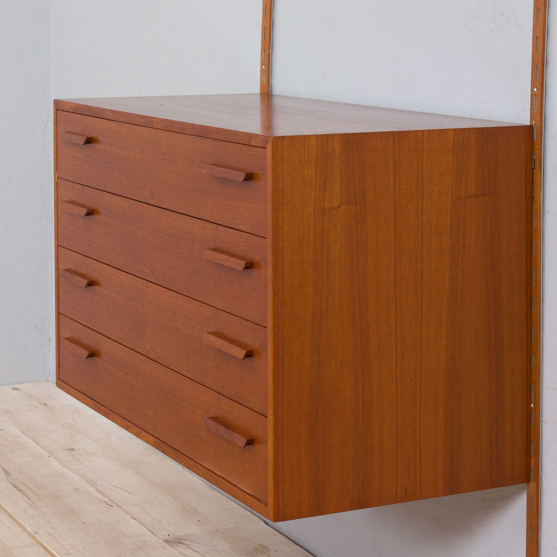 Teak wall unit with a dresser, Kai Kristiansen mid century modular shelving system, 1960s