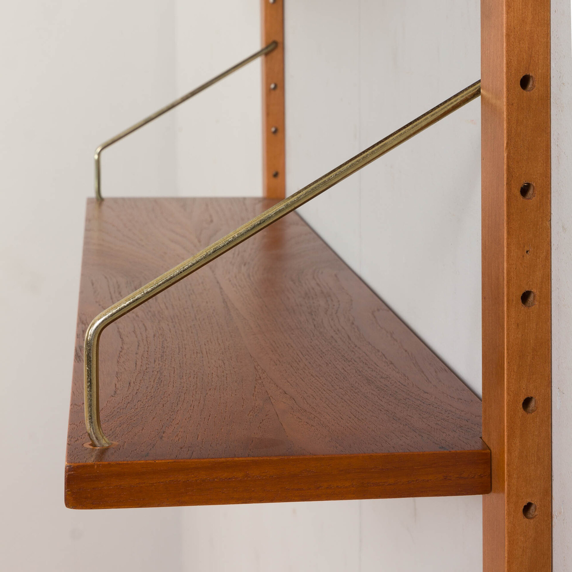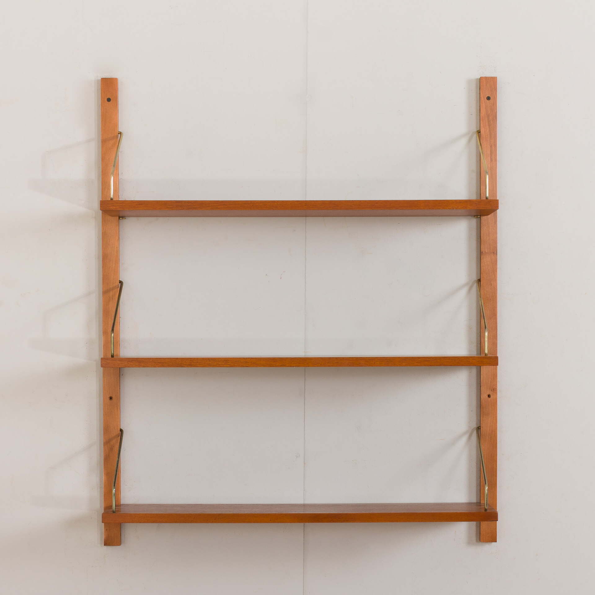 A set of three floating modular shelves designed by Poul Cadovius manufactured by Cado in Denmark in the 60s. These simple and elegant bookshelves made out of teak hang on solid wood rails by solid brass hangers.