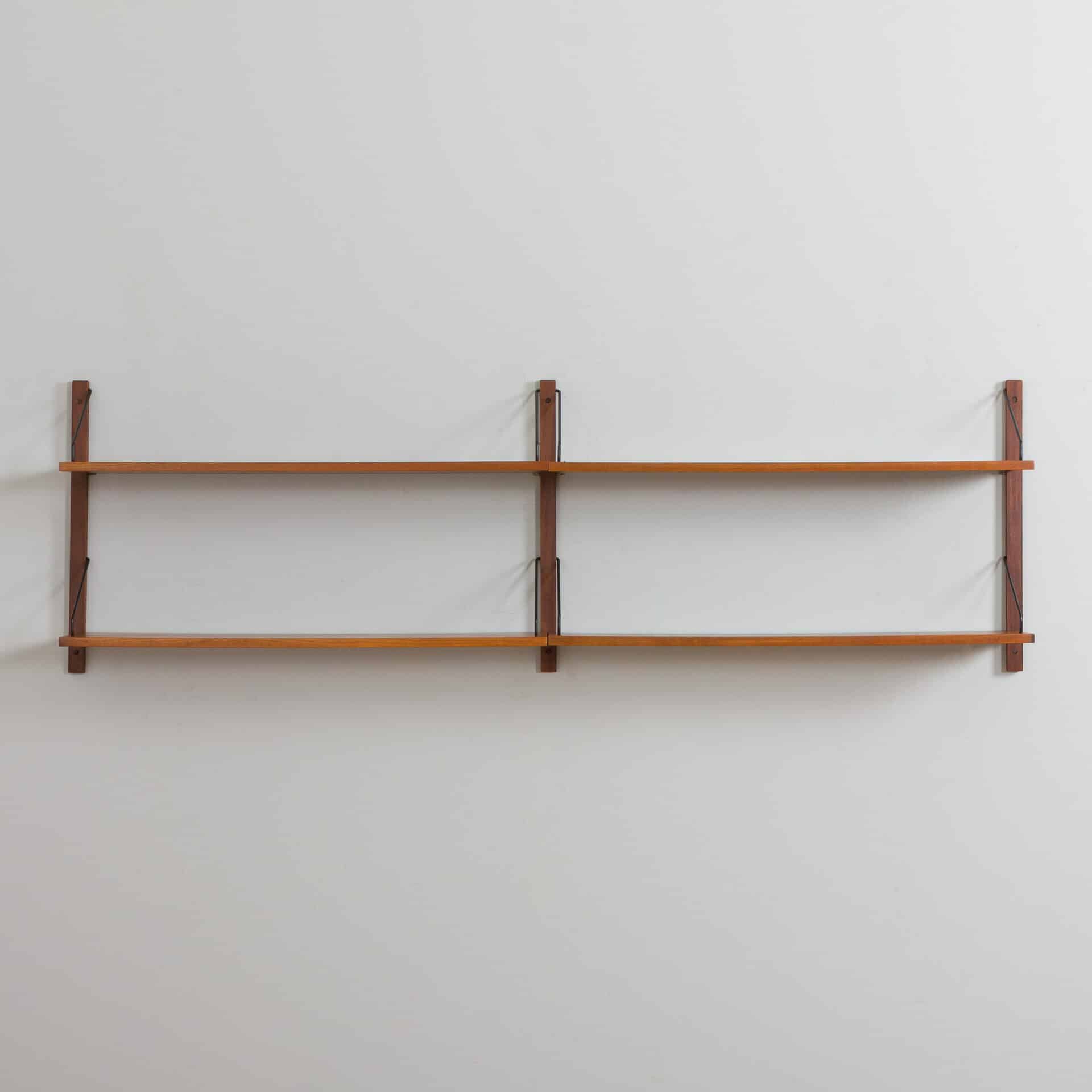 Two bay teak wall unit, set of 4 floating shelves CADO Cadovius, Preben Sorensen, Denmark, 1960s