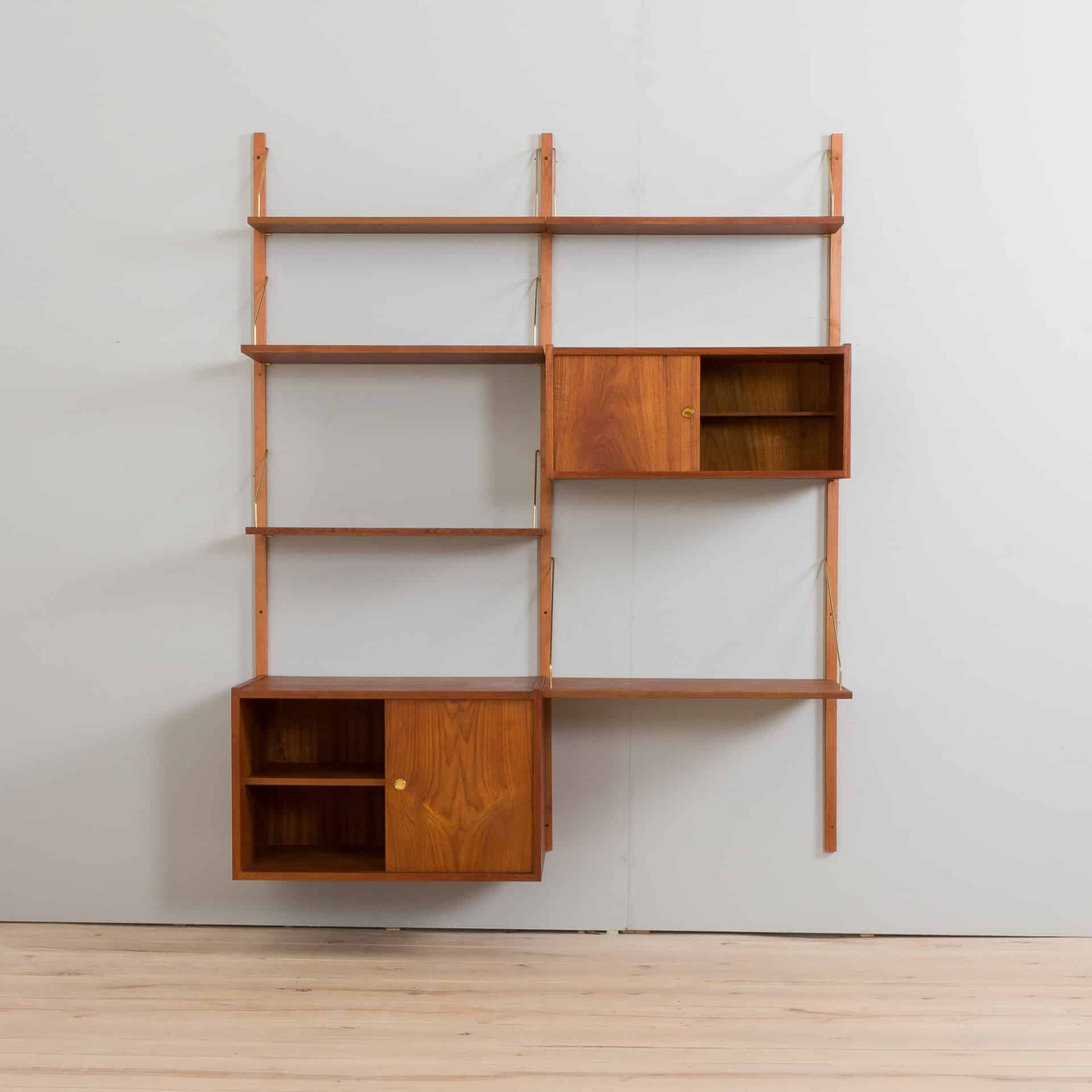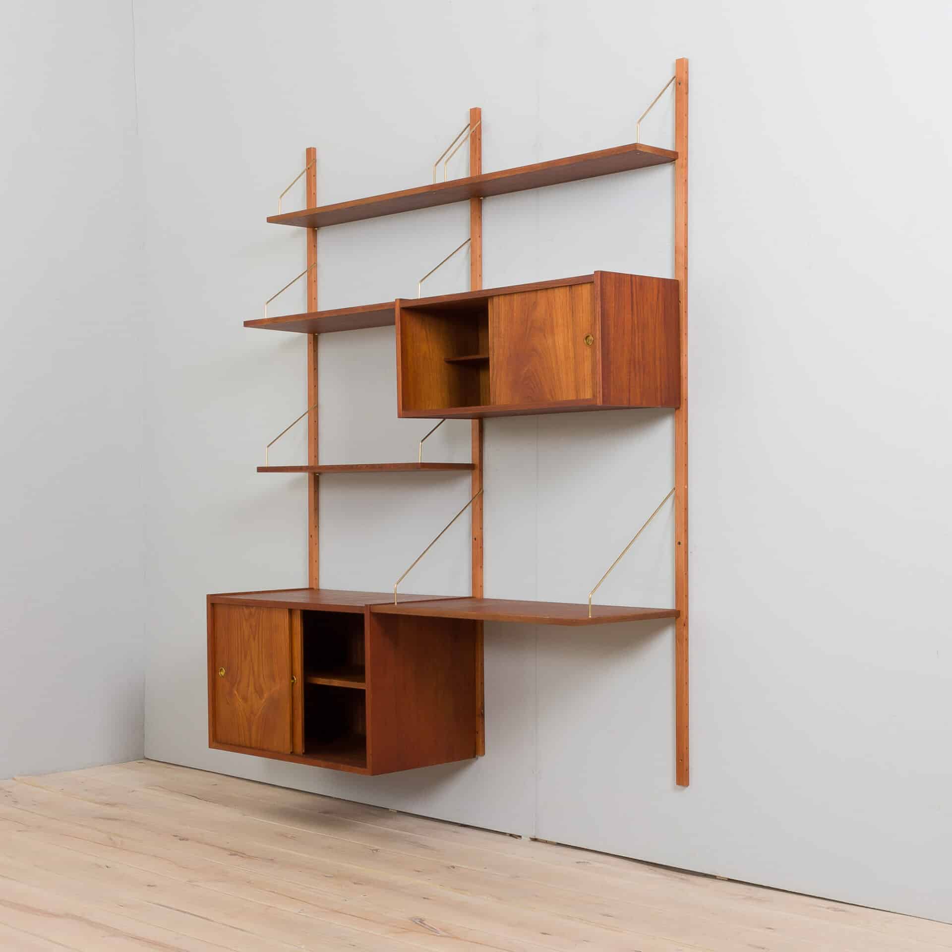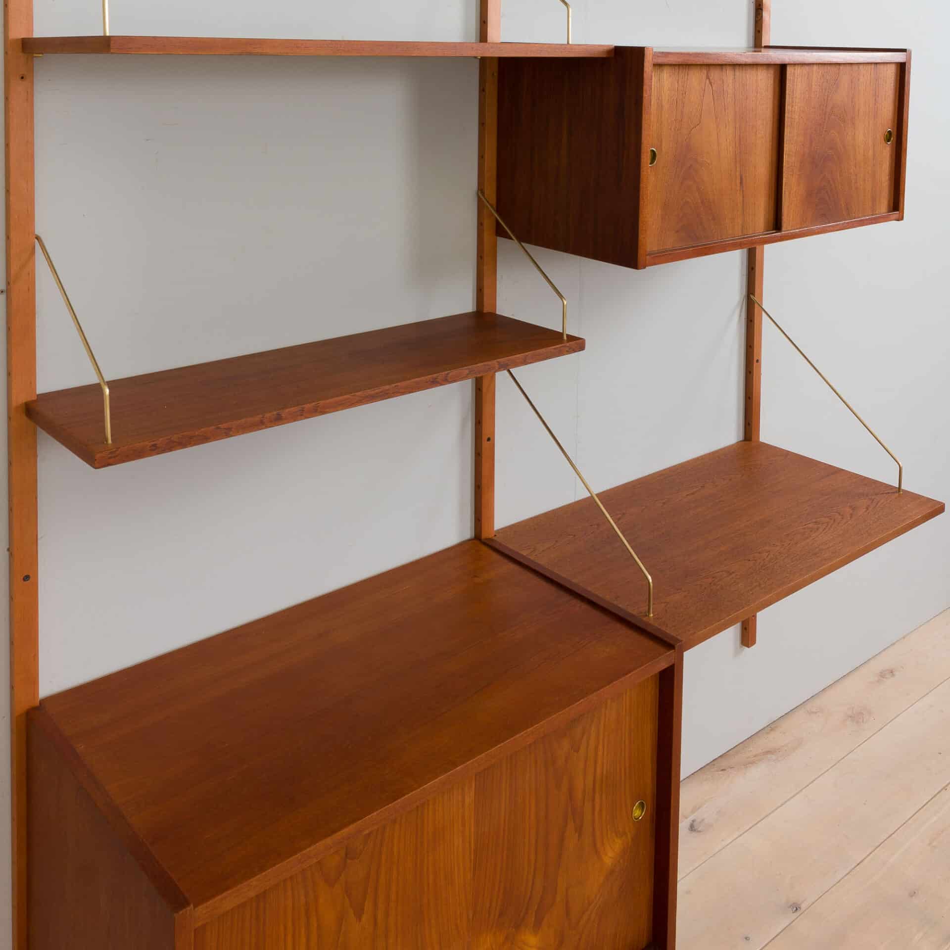 Two bay teak wall unit with desk and two cabinets in Cadovius style, PS System by Preben Sorensen for Randers, Denmark, 1960s