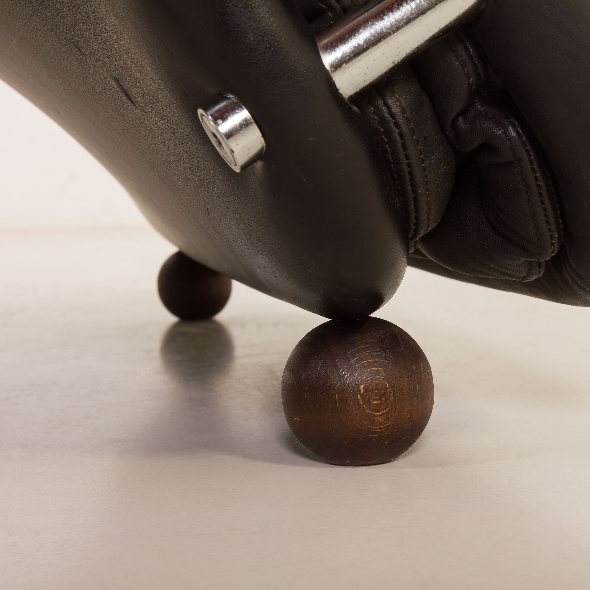 This chaise longue has an uncompromising, eye-catching shape that makes this piece of furniture the focal point of any room it is in. Its beautifully preserved original black quilted leather upholstery, closely related to the Chesterfield pattern, immediately brings a luxurious look. The chromed details, and solid wood legs are truly icing on the cake. Overall, it remains in fantastic vintage condition.