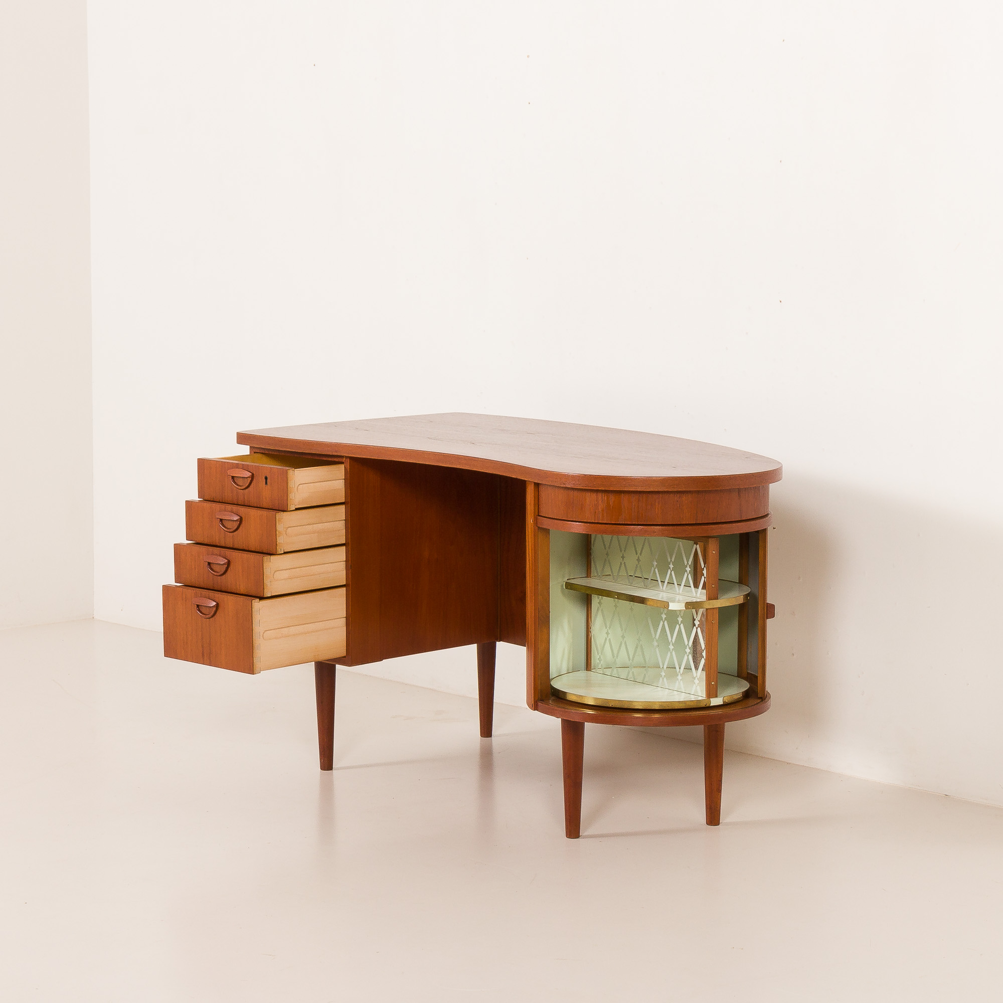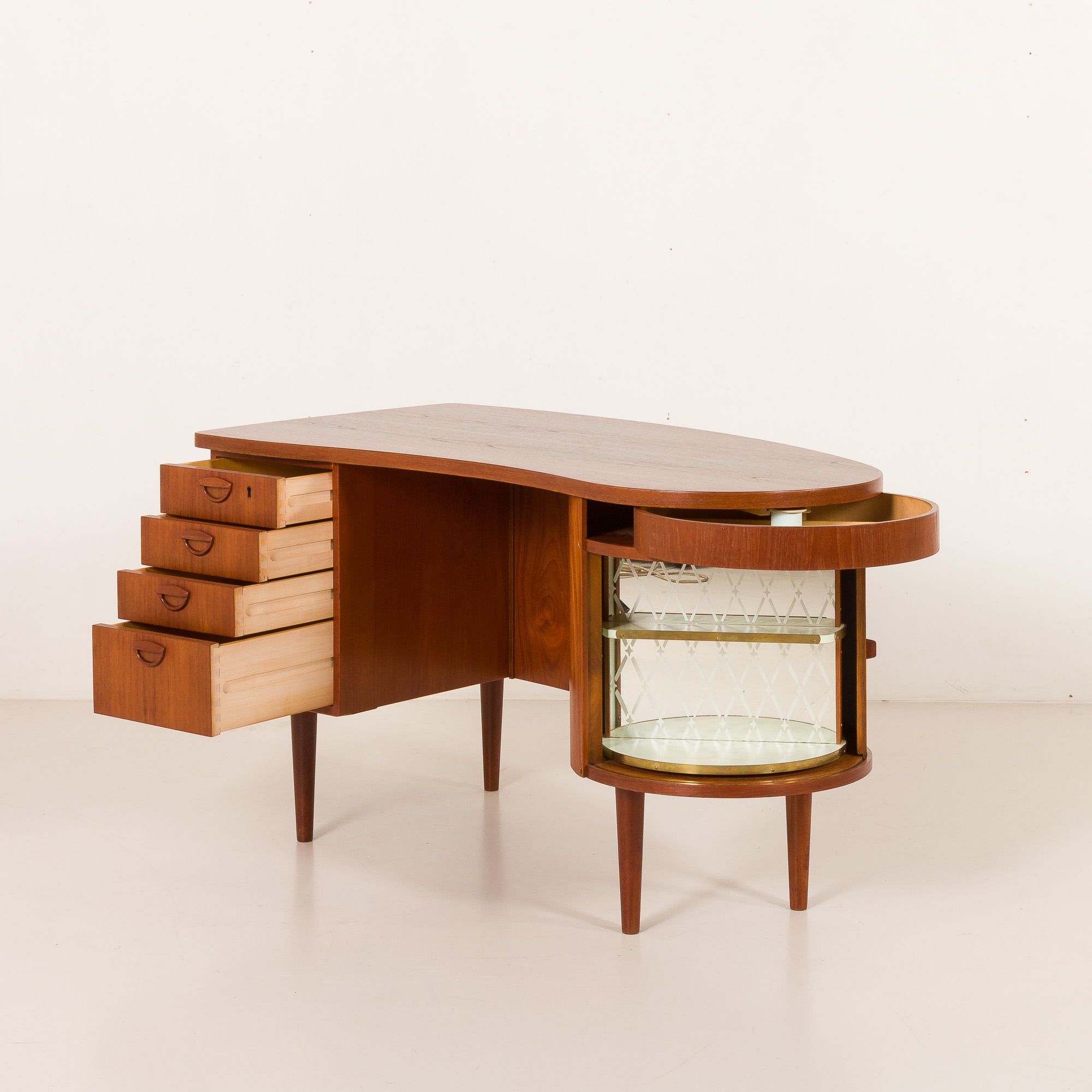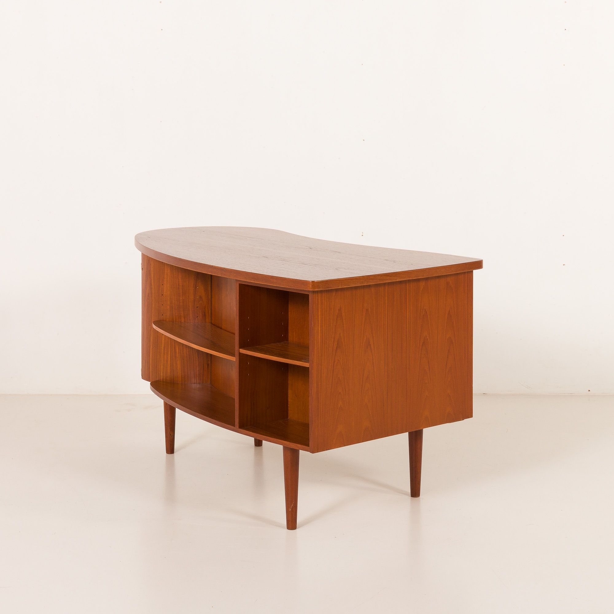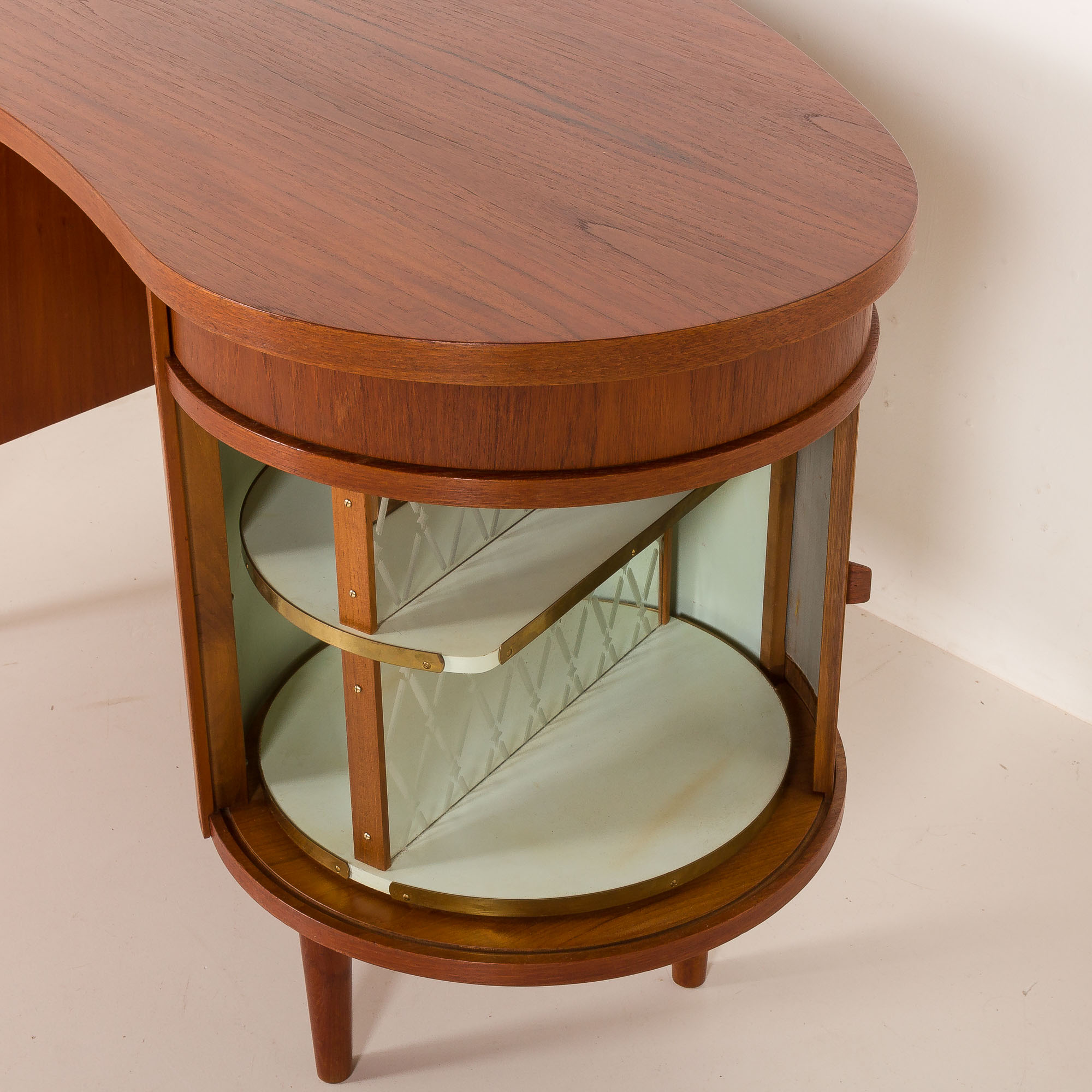 Vintage Danish kidney teak desk with a bar by Feldballes, attr. to Kai Kristiansen, 1950s