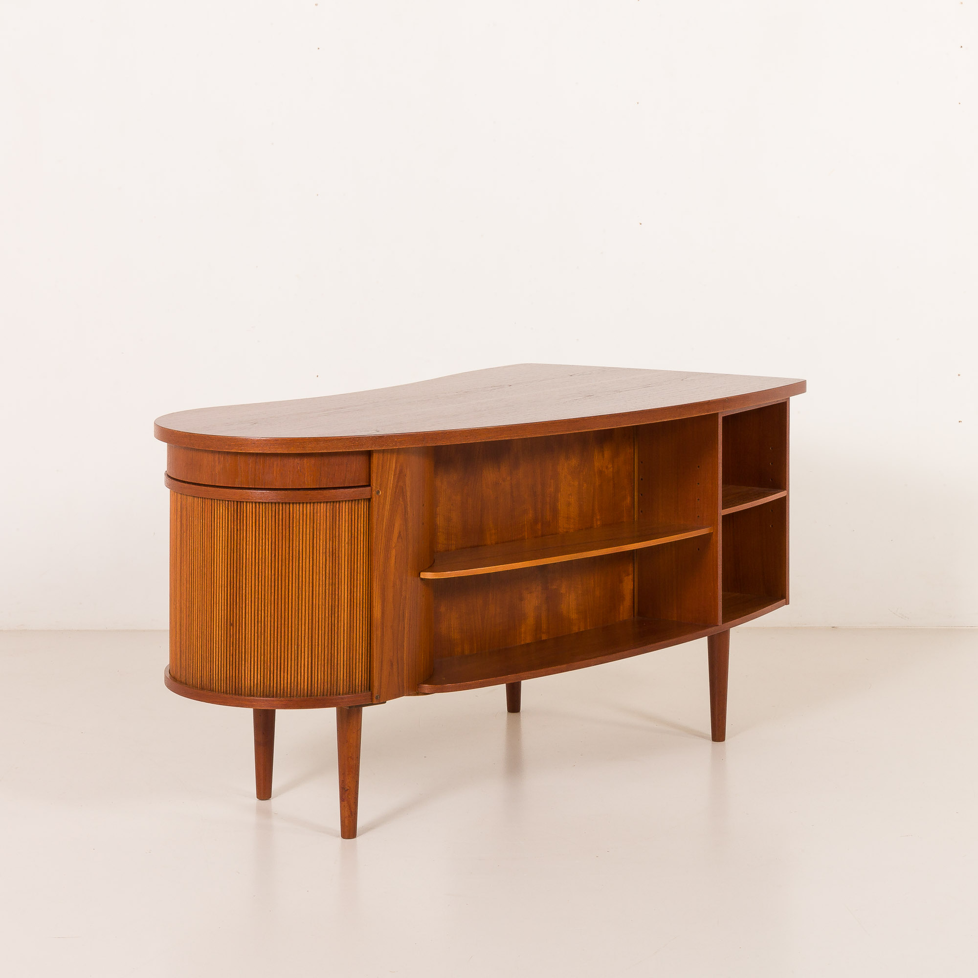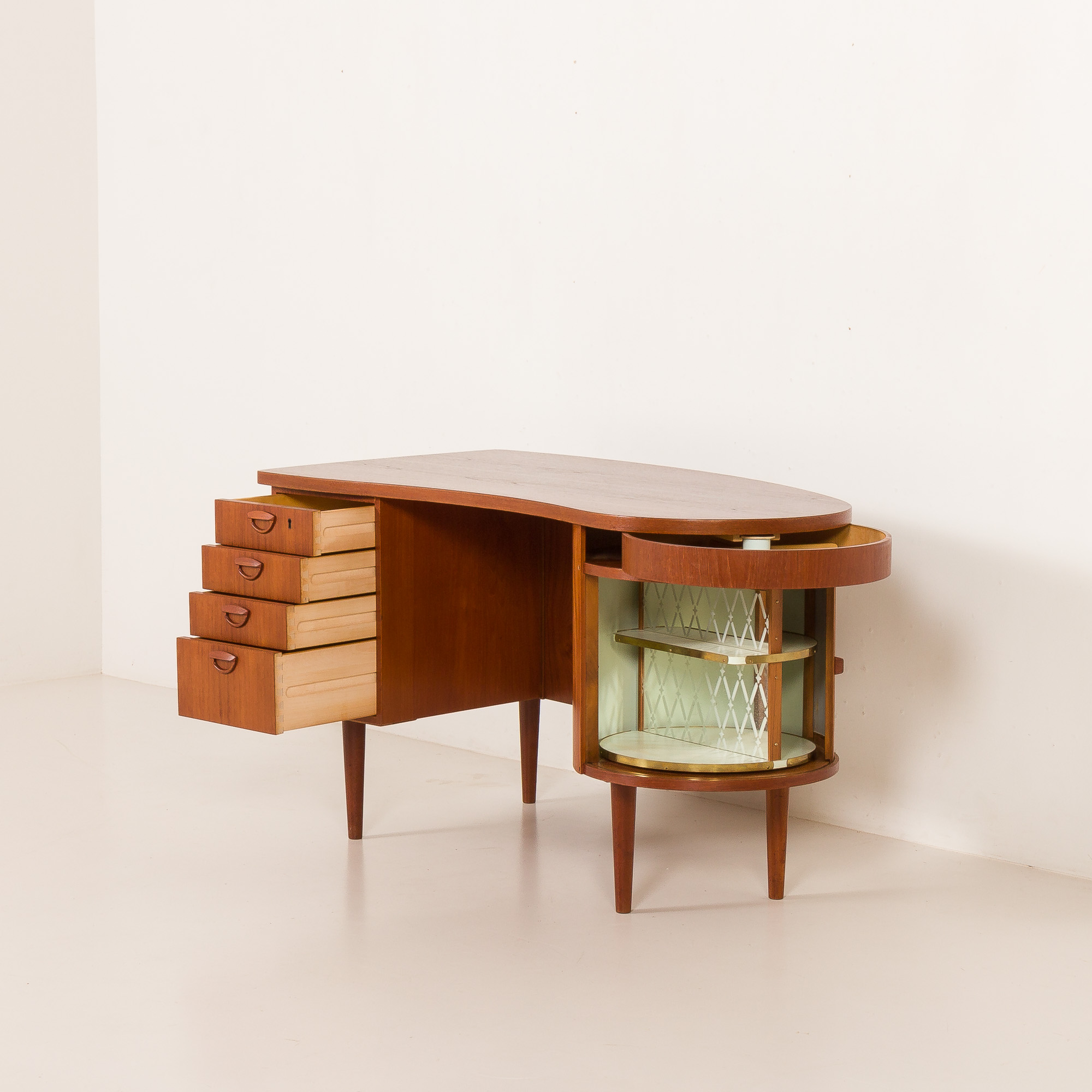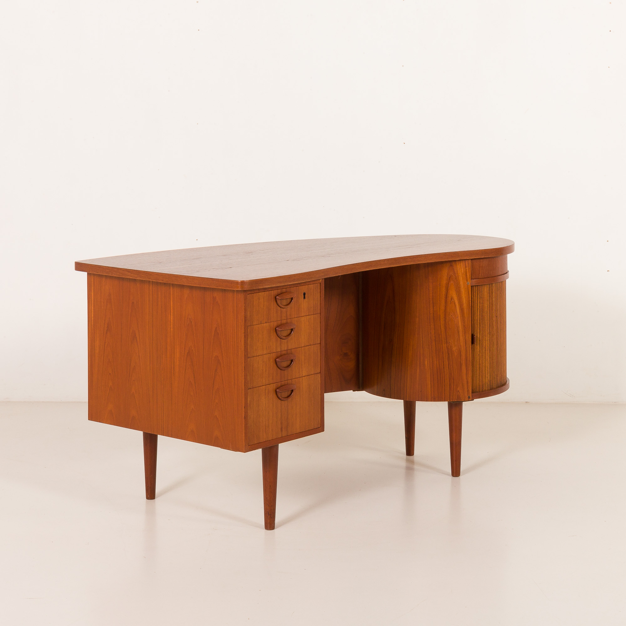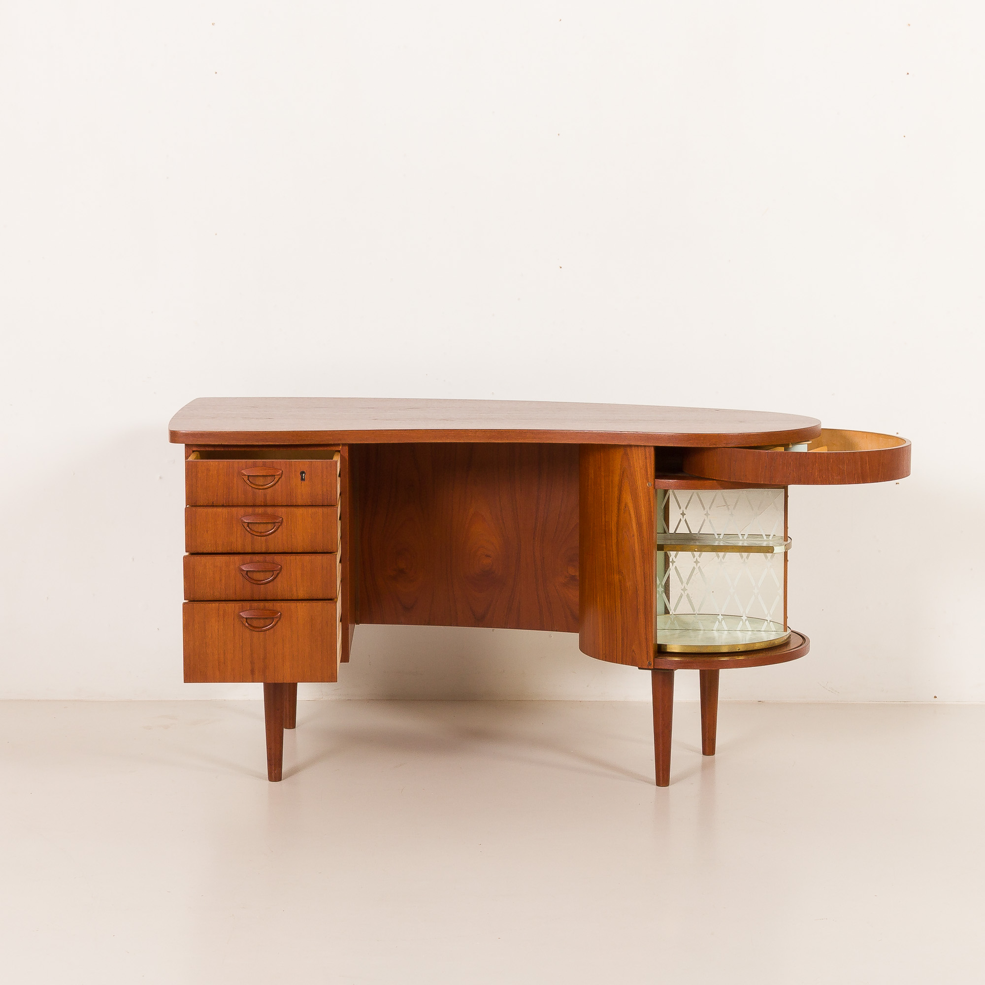 Vintage Danish kidney teak desk with a bar by Feldballes, attr. to Kai Kristiansen, 1950s