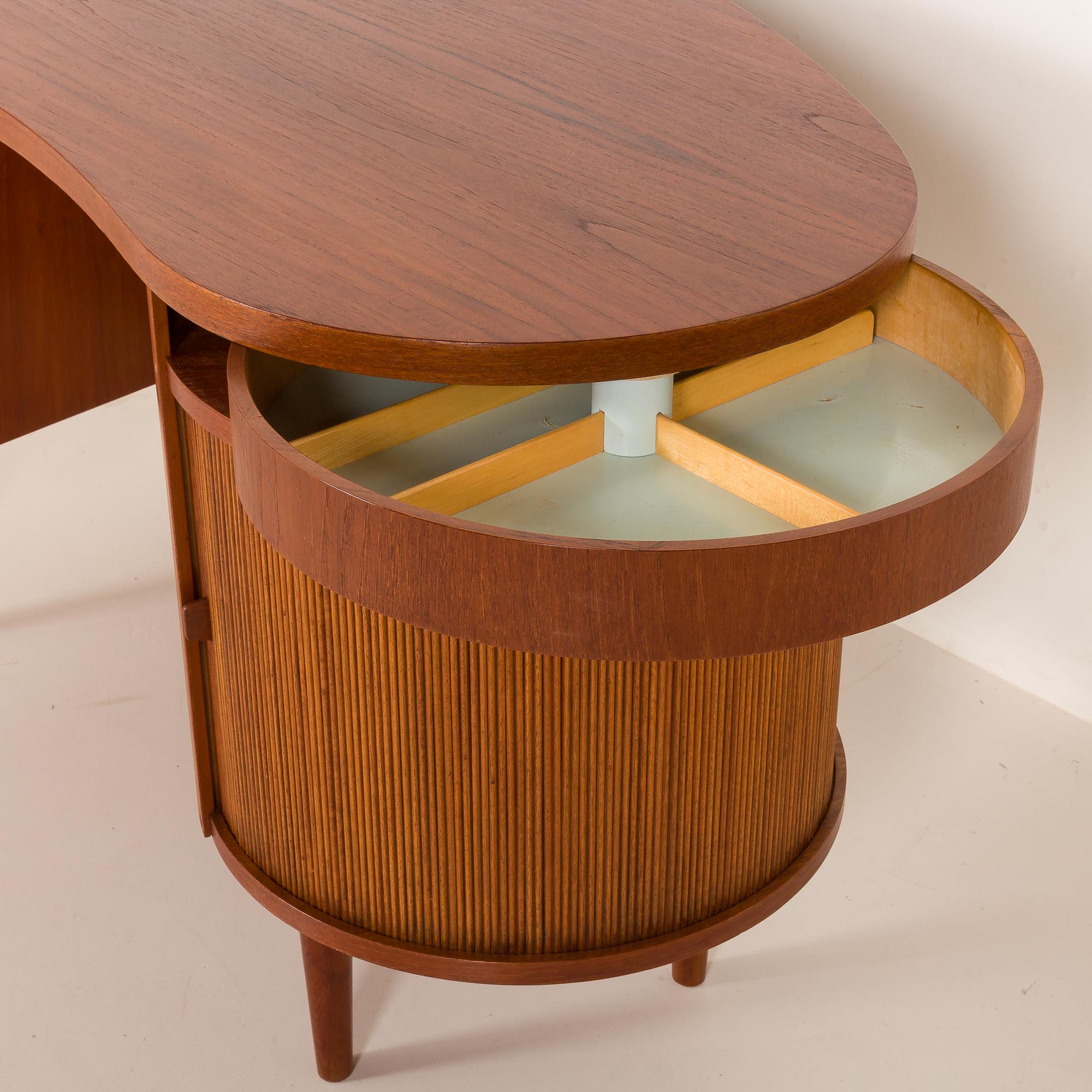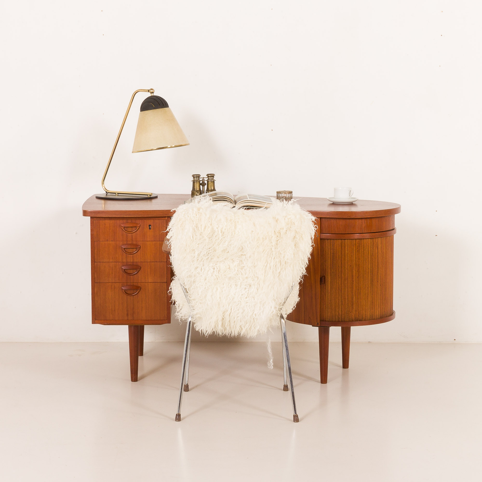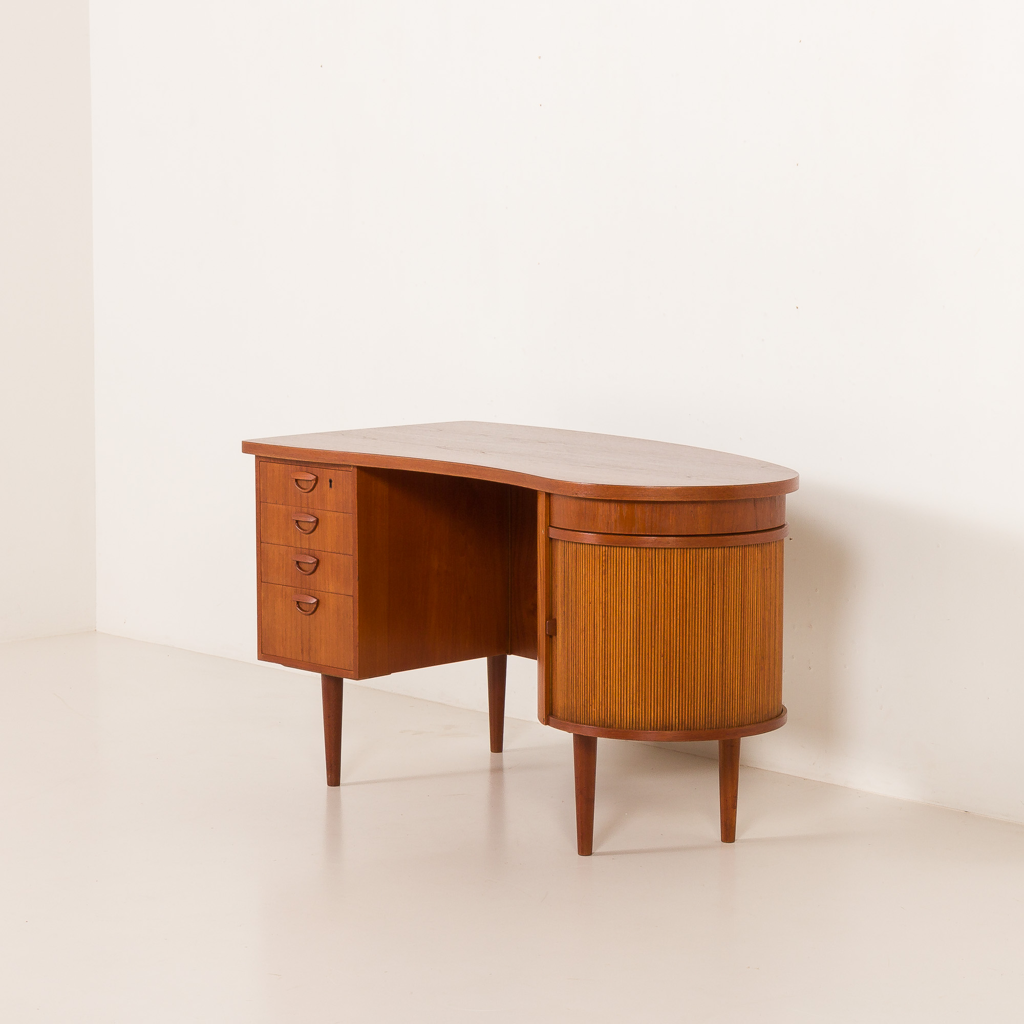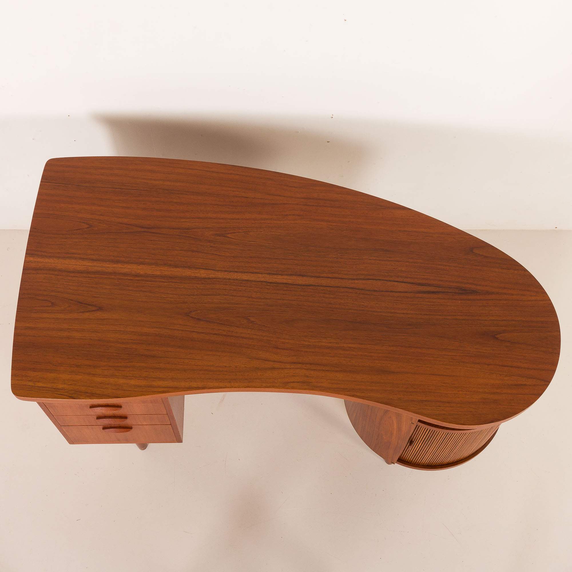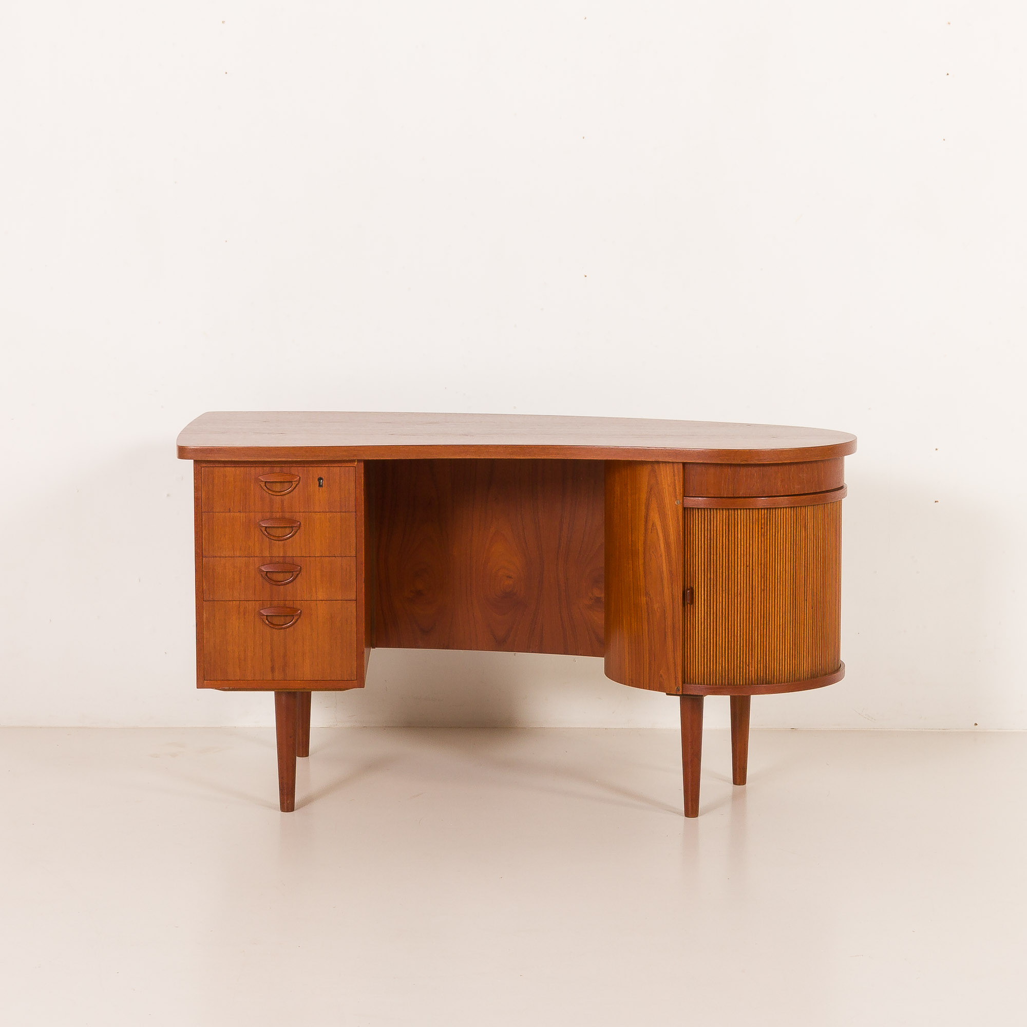 Vintage Danish kidney teak desk with a bar by Feldballes, attr. to Kai Kristiansen, 1950s