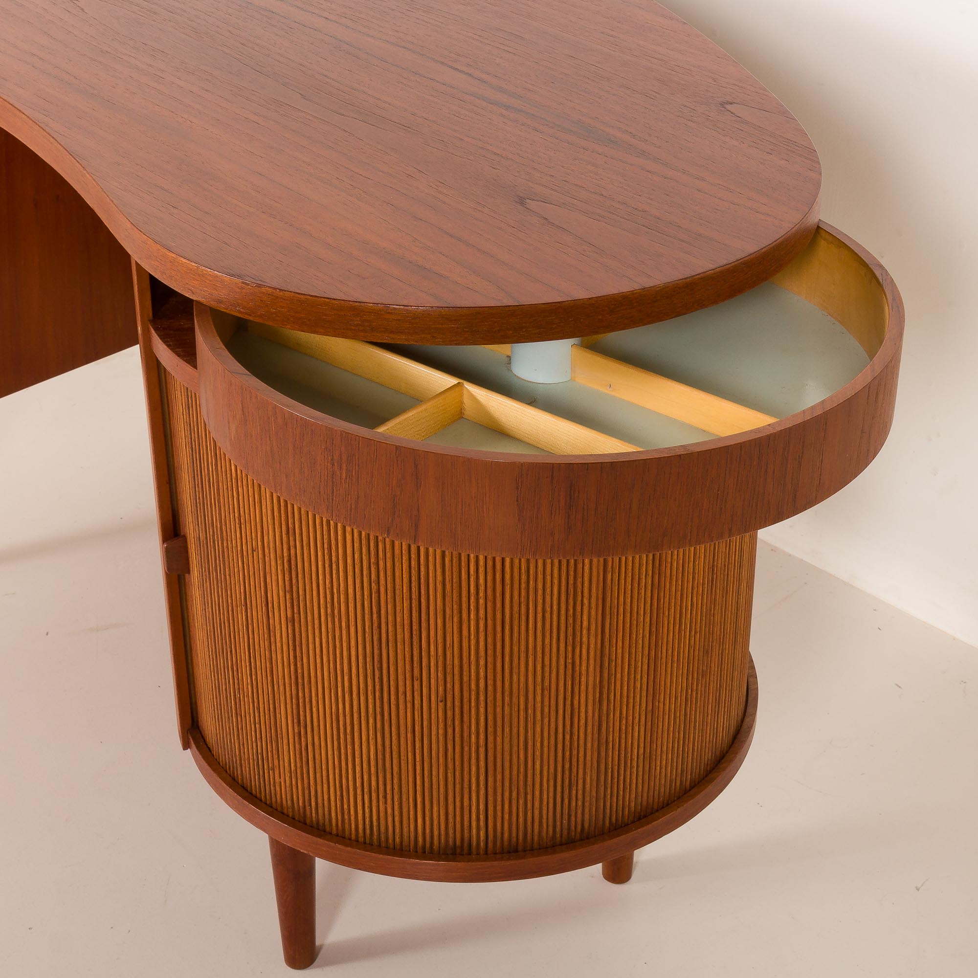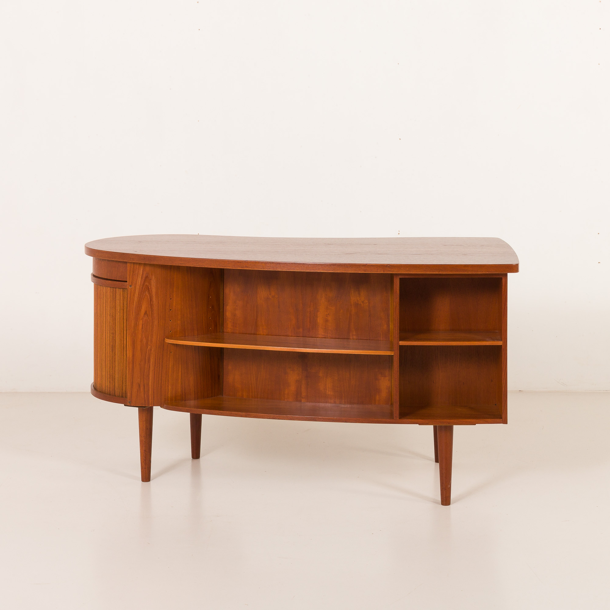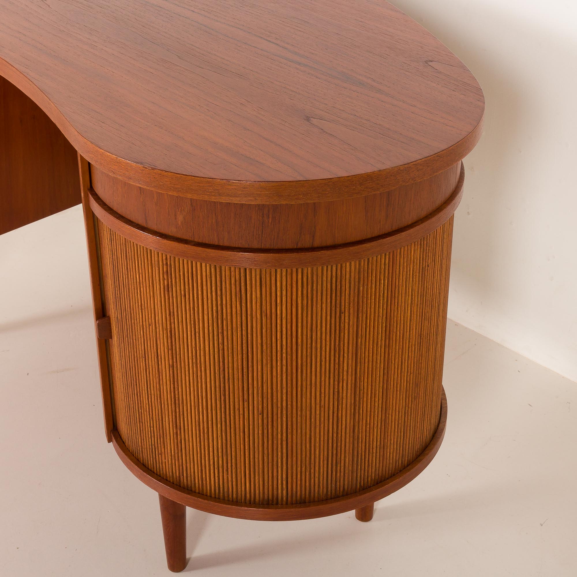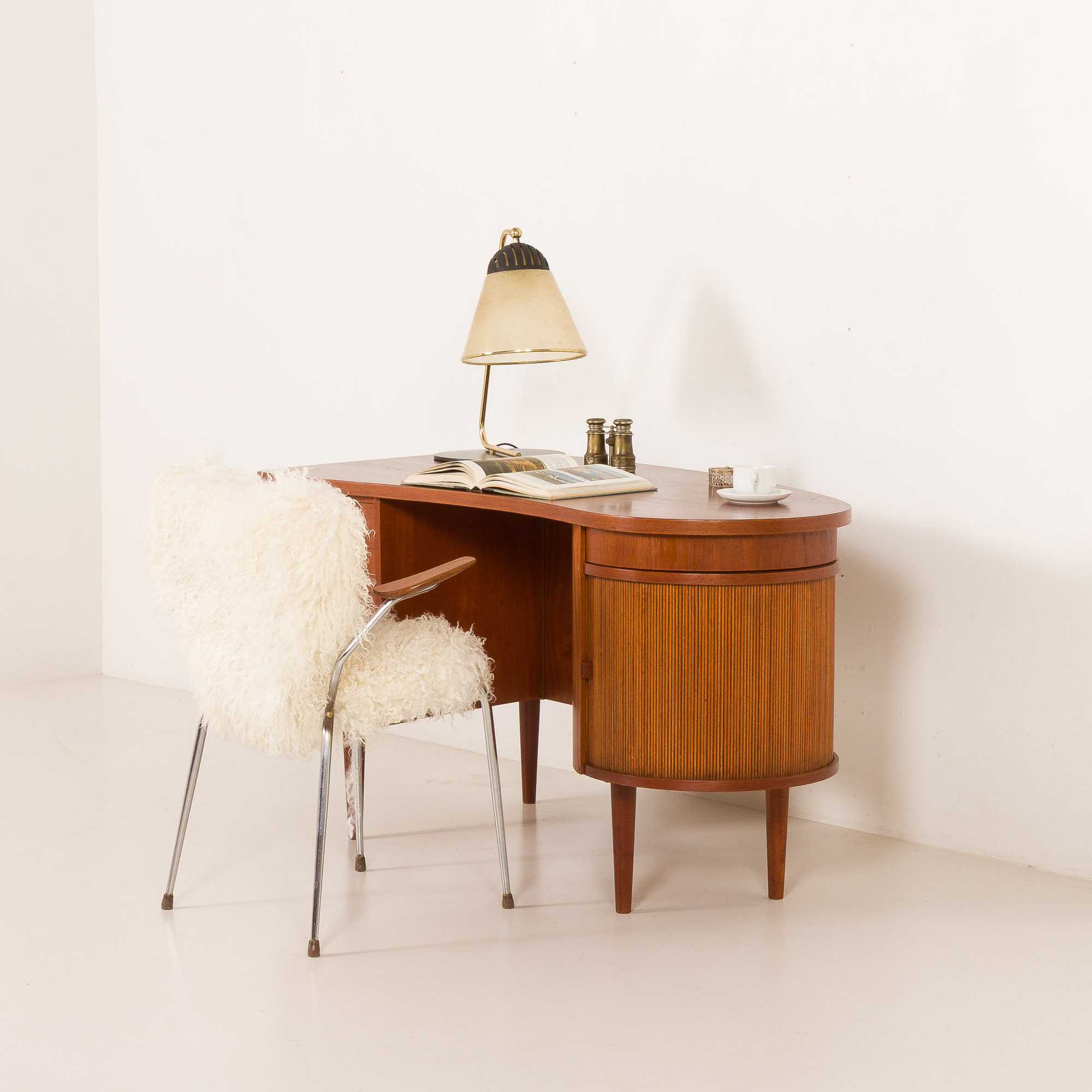 Vintage Danish kidney teak desk with a bar by Feldballes, attr. to Kai Kristiansen, 1950s
